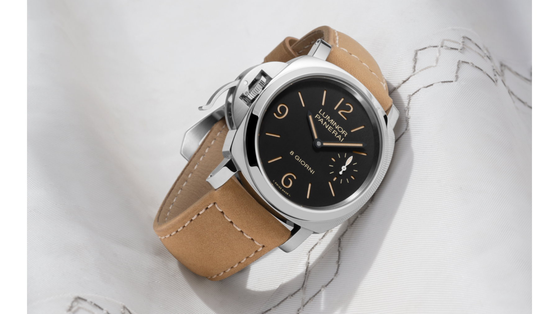 Luminor庐米诺Destro Otto Giorni腕表(PAM01655)专为佩戴于右手腕设计,融汇取自沛纳海辉煌历史的经典元素,将历史传承与现代创新巧妙融合。
