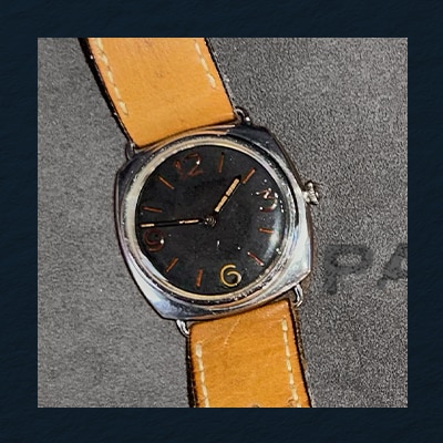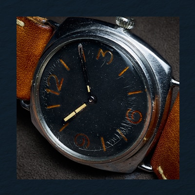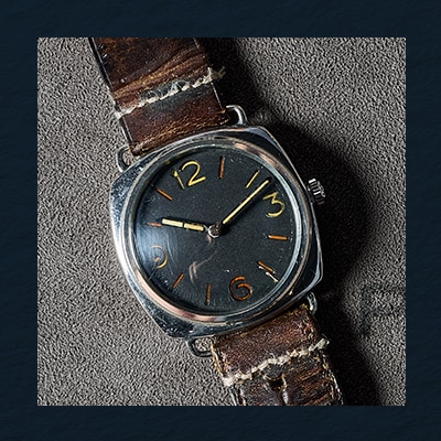 The 3646 diver’s watch with an anonymous sandwich dial, illuminated using Radiomir, a self-luminous paste that ensured constant visibility in total darkness.