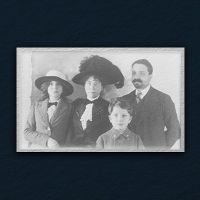 This family portrait introduces the key figures in our story: Guido with his wife Guglielmina, and their children Giuseppe and Maria.