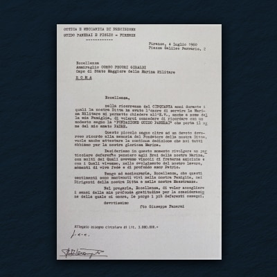 Dated 1960, this letter verifies the 50 years of collaboration with the Italian Navy. Panerai supplied tools since the 1910s, continuously evolving to meet different needs.