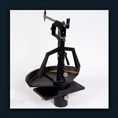 This instrument measures angles from a fixed direction. Mounted on a tripod, it used Radiomir paste to remain visible both day and night.
