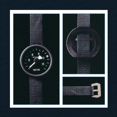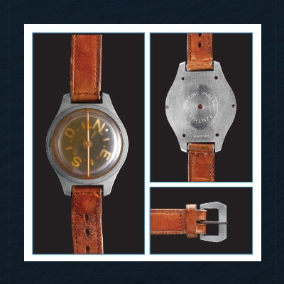 Part of the diver’s kit since the 1940s, this gauge measured underwater depth. Panerai produced several models with depth ranges spanning from 7 to 50 meters.
