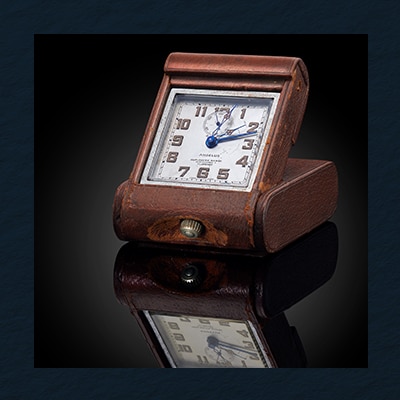 This Angelus portable alarm clock was specially commissioned for Orologeria Svizzera in the 1940s. Powered by the Angelus SF 240 calibre.