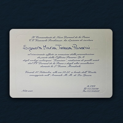 Sent to Mrs. Maria Teresa Panerai, widow of Giuseppe Panerai, this invitation to the 1993 launch reflects the continued bond between Officine Panerai and the Panerai family.