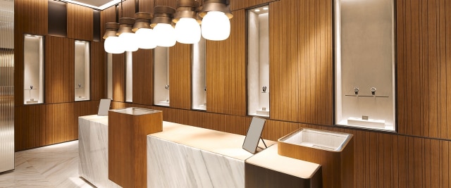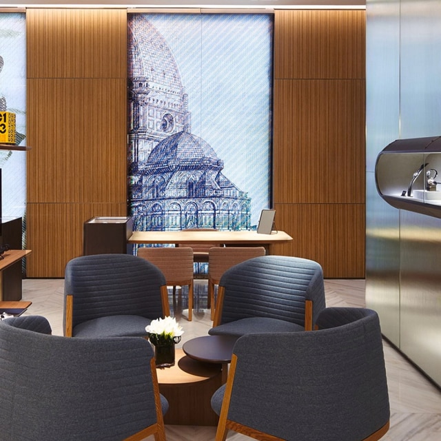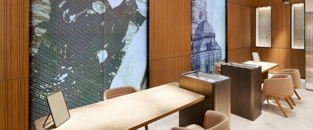 Situated at Wynn Palace, in the heart of Cotai the Panerai boutique features an area of 79 square metres, displaying the collections of the Florentine company. Patricia Urquiola, the celebrated Spanish designer, has reinterpreted the aesthetic and technical codes of the watch house, respecting the identity of the brand with a timeless design: she has succeeded in respecting tradition with a look that is nonetheless modern and up-to-date, finding a genuine link between the past and the future. The boutique is welcoming, sophisticated, contemporary and elegant: as well as admiring the technical beauty of Panerai watches, clients can relax in a luxurious, intimate space.