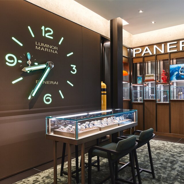 Located in King of Prussia Mall, the boutique embodies the brand's center pillars, such as the world of the sea and the technicity and innovations empowering our Modern Heroes. These elements blend seamlessly to capture the essence of the Maison, taking customers on a sensory journey that merges luxury, heritage, innovation, and the spirit of discovery. Upon entering the boutique, the iconic luminescent clock, retro illuminated to recall the Super-Luminova® fluorescence, a shared feature in all Panerai watches will grab your attention. The layout is designed to narrate the brand’s story, accompanying customers through the different collections of the Panerai universe. While shopping, clients are immersed in a world of technical prowess and welcomed by the inimitable allure of Italian hospitality.