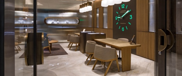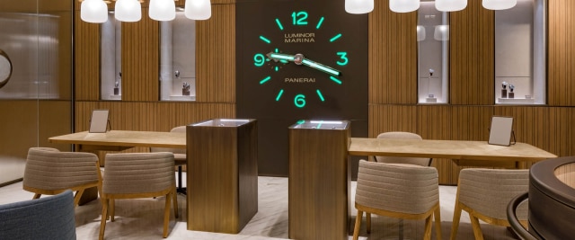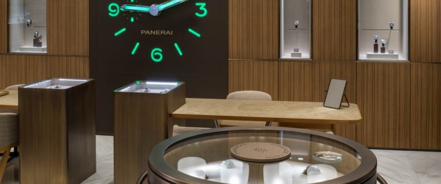 Located in Yorkdale Shopping Centre, the boutique embodies the brand's center pillars, such as the world of the sea and the technicity and innovations empowering our Modern Heroes. These elements blend seamlessly to capture the essence of the Maison, taking customers on a sensory journey that merges luxury, heritage, innovation, and the spirit of discovery. Upon entering the boutique, the iconic luminescent clock, retro illuminated to recall the Super-Luminova® fluorescence, a shared feature in all Panerai watches will grab your attention. The layout is designed to narrate the brand’s story, accompanying customers through the different collections of the Panerai universe. While shopping, clients are immersed in a world of technical prowess and welcomed by the inimitable allure of Italian hospitality.