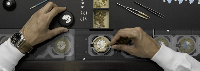 这阶段的工序基本以手工进行,但沛纳海制表厂引进高端精密技术,辅助不可或缺的个人技术造诣,将效率和质量控制优化,结合各具所长的专业技能,组成一条结构严谨的生产线。